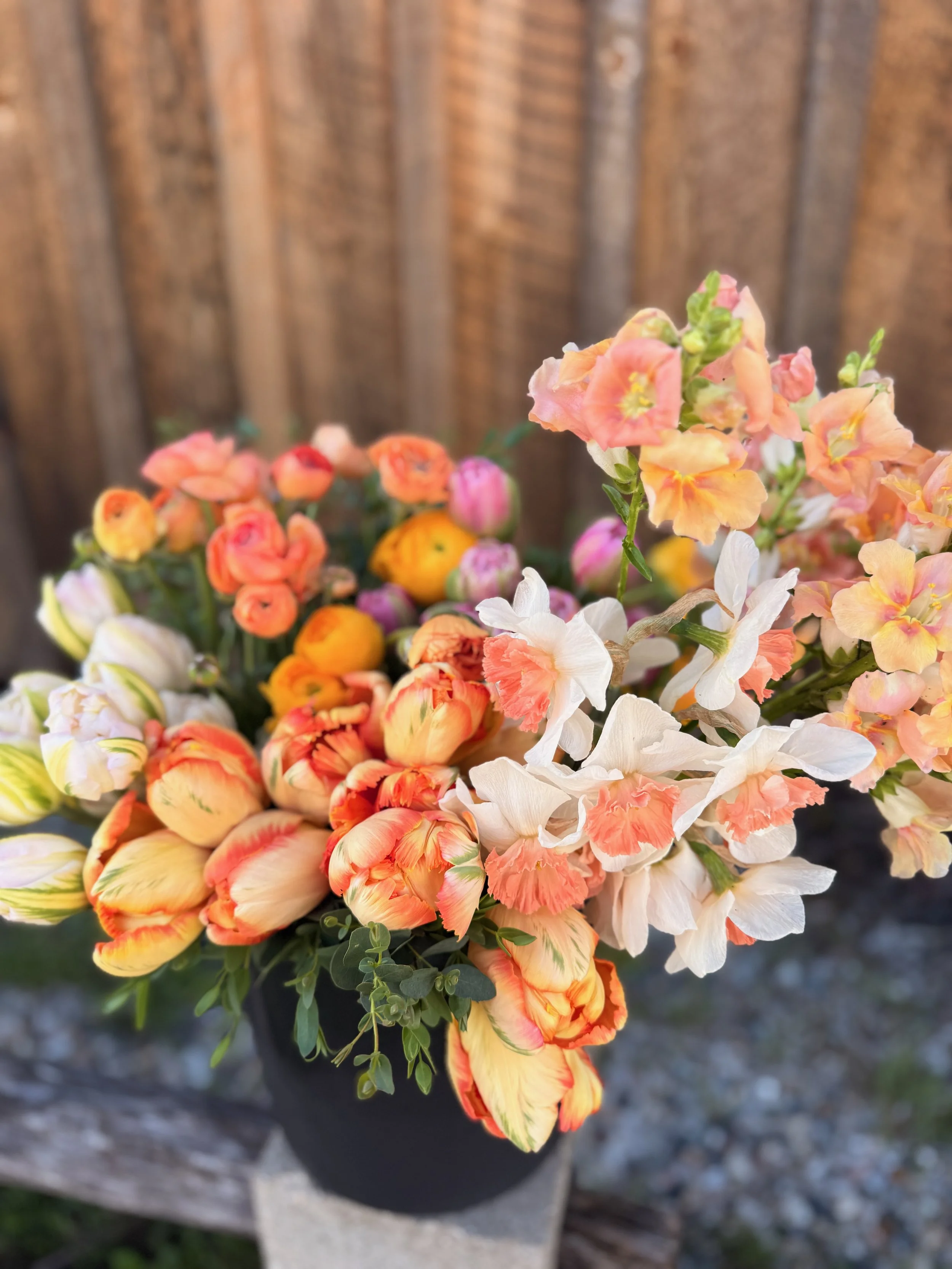 A Bucket of Blooms for a wedding event in early 2026